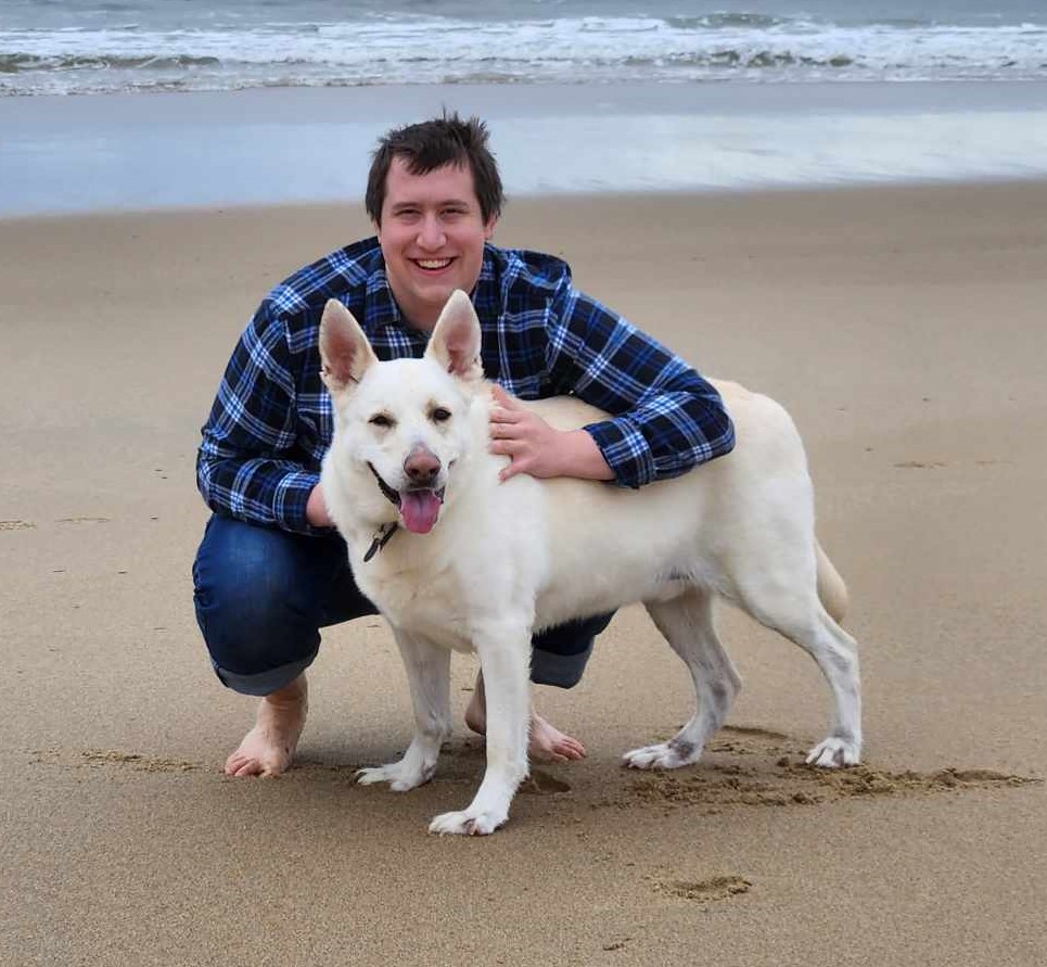 I currently live in Old Orchard Beach, ME with my partner, Michael, and our beautiful German Shepherd, Yuki. We go beachcombing all the time while Yuki tries to bite waves.